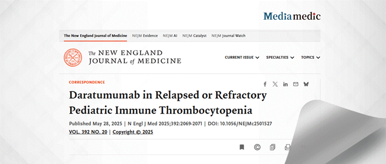 On May 28, 2025, Dr. Lei Zhang’s team at Institute of Hematology & Blood Diseases Hospital, Chinese Academy of Medical Sciences , published a study titled “Daratumumab in Relapsed or Refractory Pediatric Immune Thrombocytopenia” in The New England Journal of Medicine (impact factor 96.3). The study demonstrates that daratumumab offers both rapid onset and durable efficacy in pediatric relapsed/refractory ITP, with a favorable safety profile, providing an innovative therapeutic option for this challenging patient population.