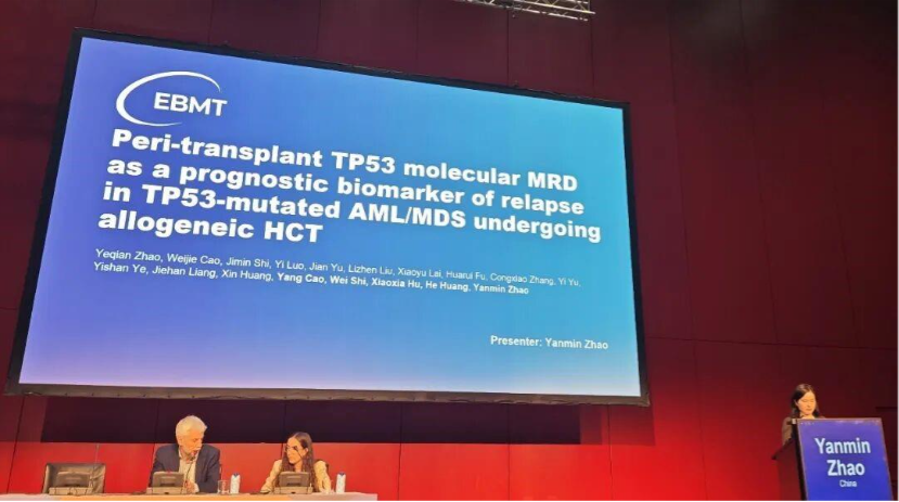 During the conference, Professor Yanmin Zhao from the First Affiliated Hospital, Zhejiang University School of Medicine presented an oral report entitled “TP53 Variant Allele Frequency as a Genetic MRD Marker Predicts Post-Transplant Relapse and Guides Subtype-Specific Therapy in TP53-Mutated AML/MDS.” This work provides important evidence for optimizing clinical strategies.